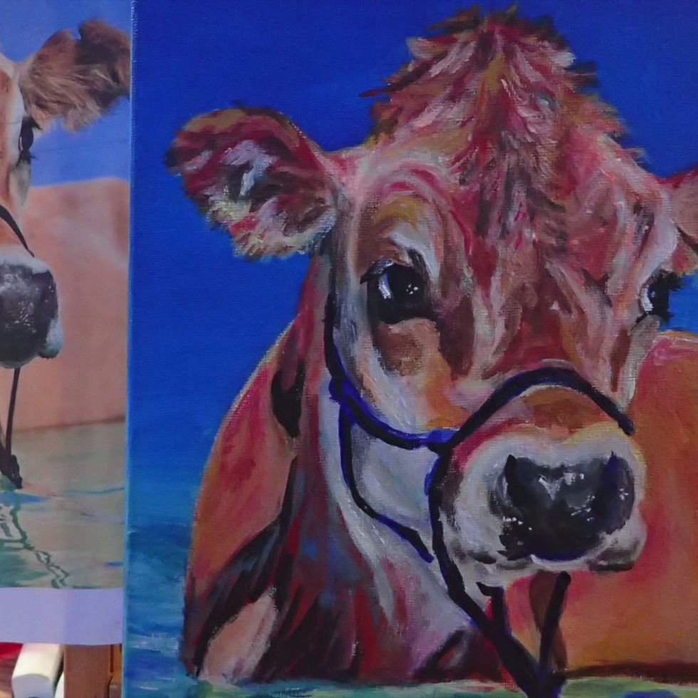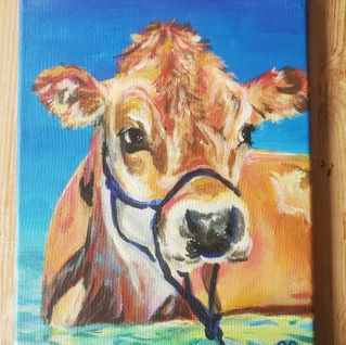 Bring a touch of charm and tranquility to your home with this original acrylic painting of a Jersey cow by the sea Unframed, serene, and full of charm.