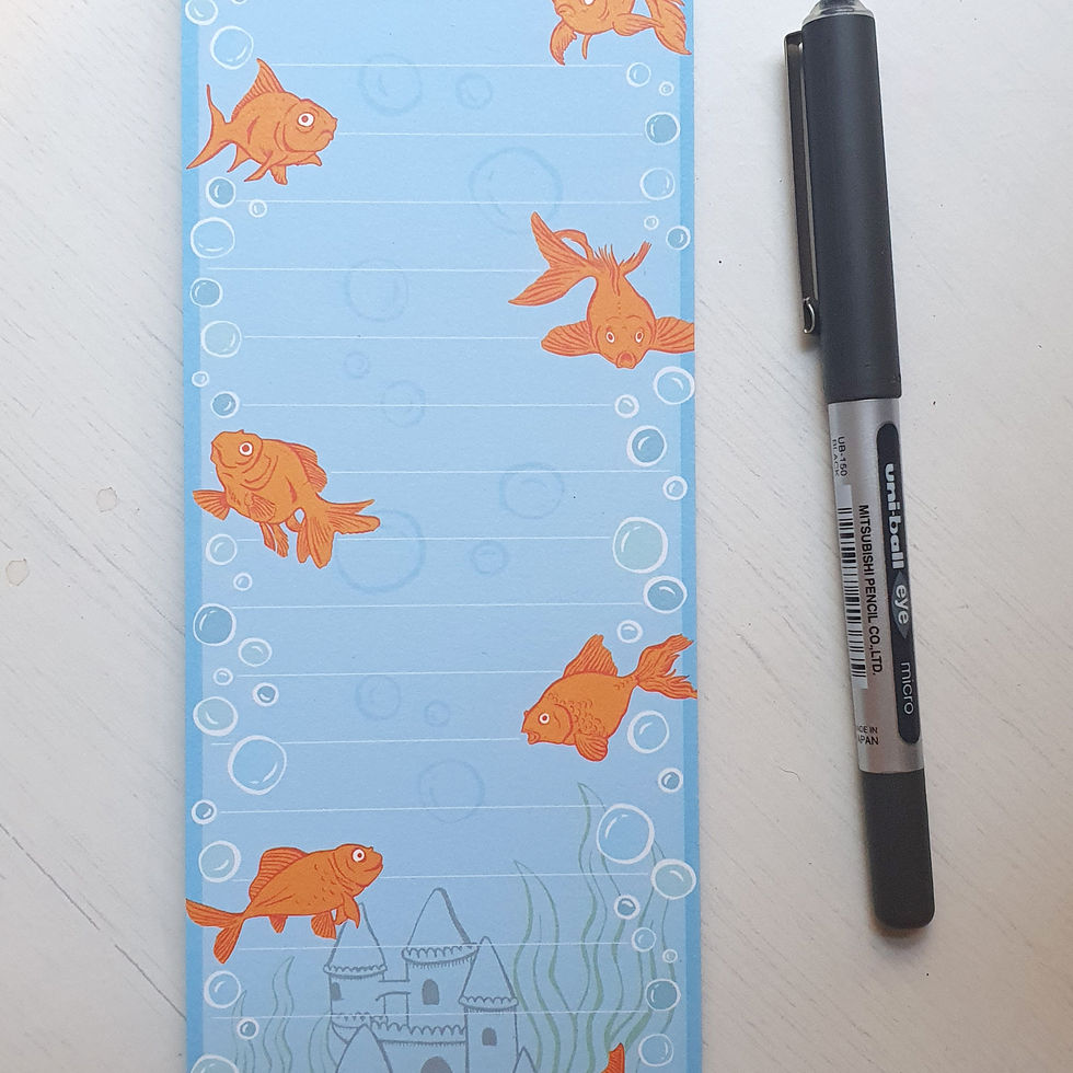 Do you know anyone who is extremely forgetful and has the Memory of a Goldfish? Use this list pad to help remind you of things to do. Illustrated with cartoon goldfish, bubbles and a castle in the background.