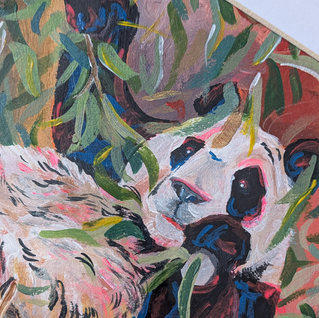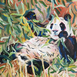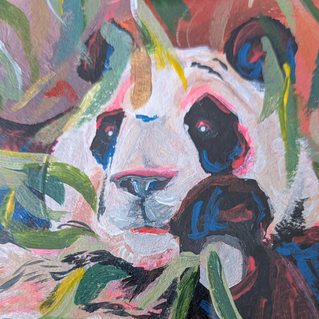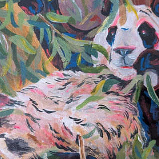 Step into a peaceful, playful world with Panda Enjoying Bamboo, an original acrylic painting by Sophie Pitman.